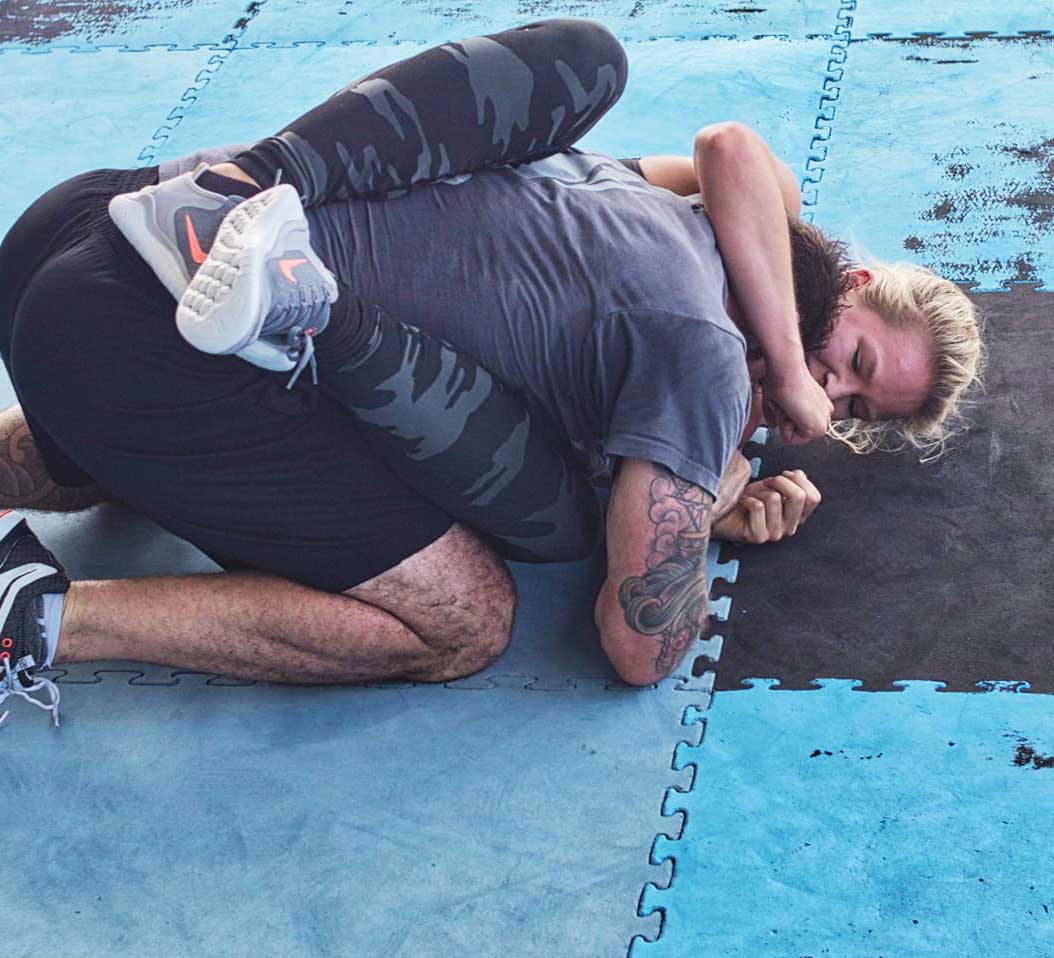 Neben der Selbstverteidigung werden auch Kampfsport-Elemente aus MMA und Grappling trainiert, sodass die erlernten Techniken unter kontrollierten Bedingungen angewendet und vertieft werden können. Sicherheit, Partnerkontrolle und individuelle Intensität stehen dabei jederzeit im Vordergrund, sodass Anfänger wie Fortgeschrittene effektiv trainieren können.