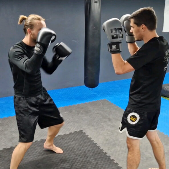 Kontrolliertes Sparring im Boxen, Kickboxen, MMA und Grappling bei angepasster Intensität.