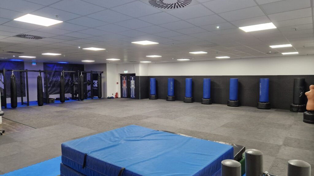 Wir vermieten unsere moderne, gut ausgestattete Trainingshalle mit insgesamt ca. 300 m², davon ca. 170 m² Trainingsfläche, zur regelmäßigen Nutzung für Kurse, Trainings und Schulungen.