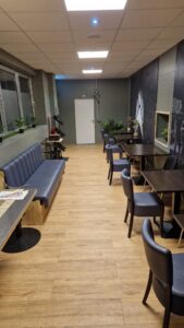 - Gemütlicher Aufenthaltsraum mit Tischen, Stühlen und Teeküche